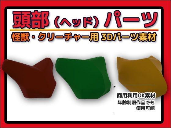 怪獣・クリーチャー用「頭部(ヘッド)」パーツ 3Dデータ(fbx)〜商用OK著作権フリー