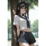 陽を遮る障子の向こう側で、小麦色の肌に残る眩いビキニ跡。 その時代を逸脱した不自然な境界線が、彼女の秘めやかな行為に、より深い羞恥と背徳の彩りを添えています。 乱れる息に揺れる空気、湿度を帯びた肌の輪郭を、一枚一枚丁寧に描写しました。